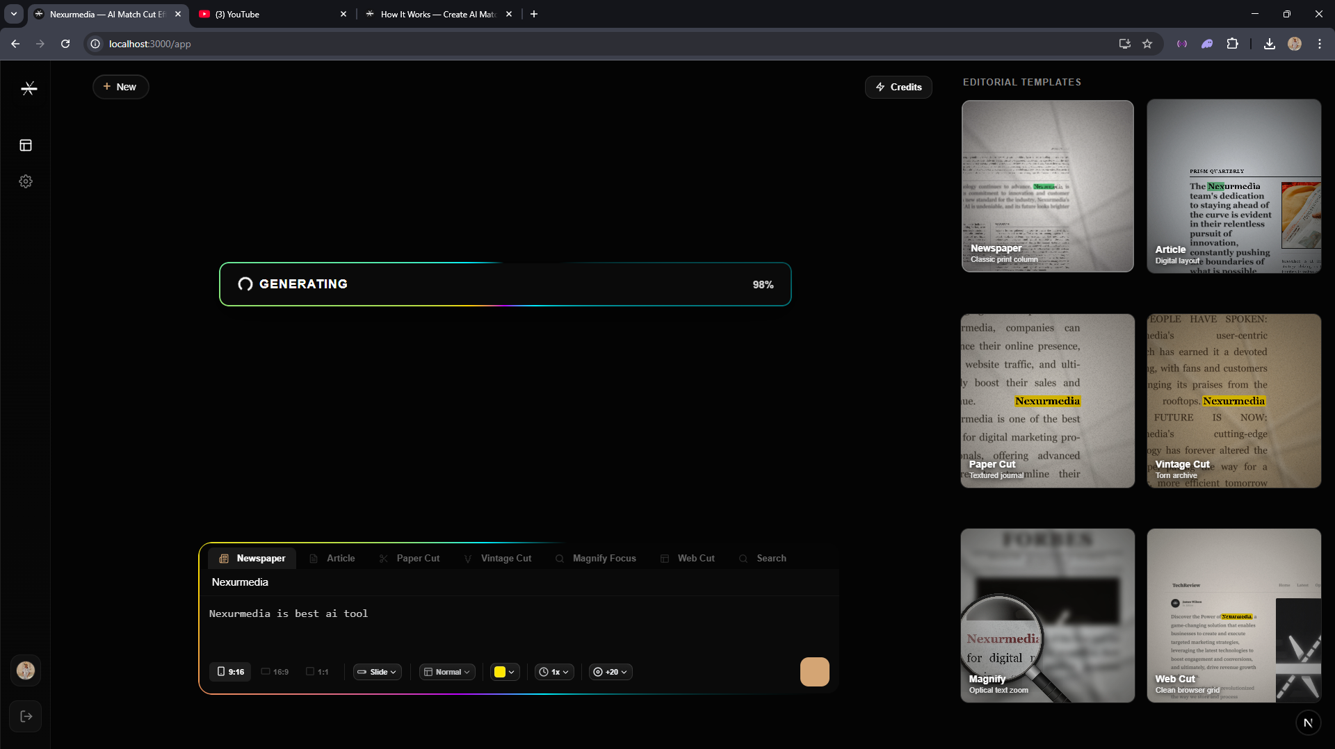 Once you hit generate, our engine enters the "Thinking" state. It synthesizes context, headlines, and articles, preparing the visual layout in real-time.