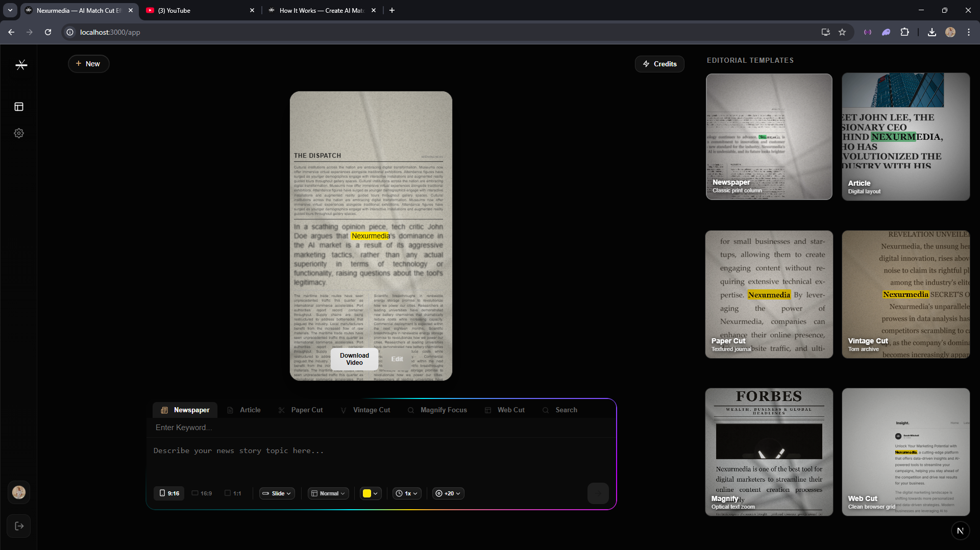 Nexurmedia dynamically switches between specialized rendering pipelines. From the physics-based 3D paper textures of Newspaper Mode to the simulated browser rendering of Google Search, every frame is calculated in real-time.